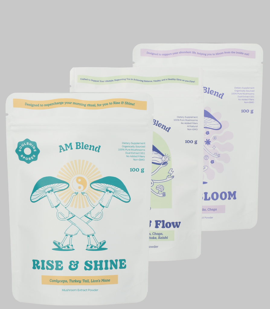 Wake up to Rise & Shine, a medicinal mushroom blend of cordyceps, turkey tail and lion’s mane, to kick start your day.  Designed to promote energy, vitality and cognitive function while supporting your immunity and overall health.