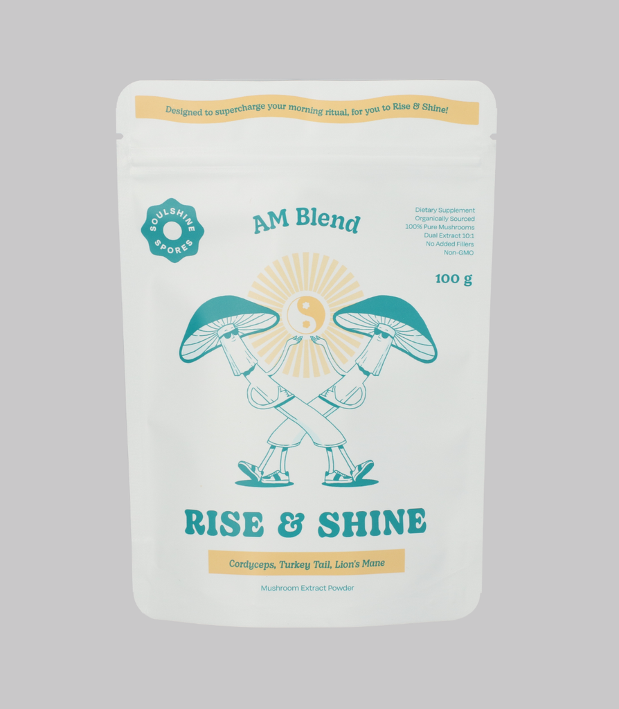Wake up to Rise & Shine, a medicinal mushroom blend of cordyceps, turkey tail and lion’s mane, to kick start your day. Designed to promote energy, vitality and cognitive function while supporting your immunity and overall health.